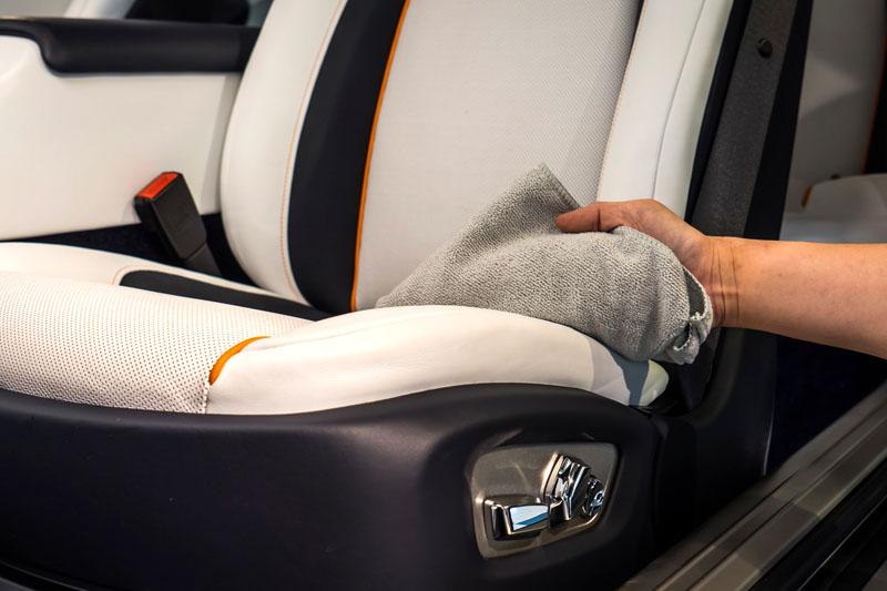 車内がきれいだと気持ちよく過ごせて同乗者の方も自然と笑顔になります。目に見える場所や肌に触れる部分はもちろん、普段は触れることのない箇所に至るまで丁寧に施工いたします。また、インテリアの繊細な素材を傷つけないよう使用する道具にもこだわり、拭き上げの工程では用途に応じて4種類のタオルを使い分けています。